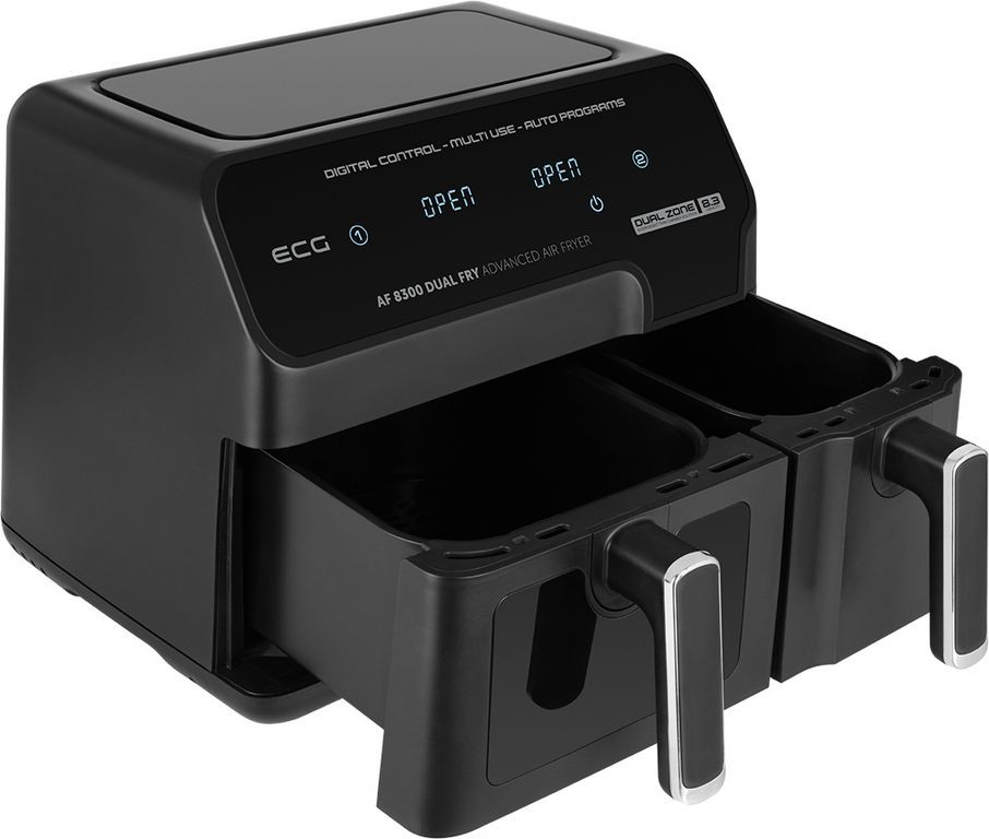 A dupla kamrás légkeveréses olajsütő a modern és egészséges főzés tökéletes eszköze. Készítsen gyorsan és hatékonyan ízletes ételeket, energiatakarékosan és olajmentesen!