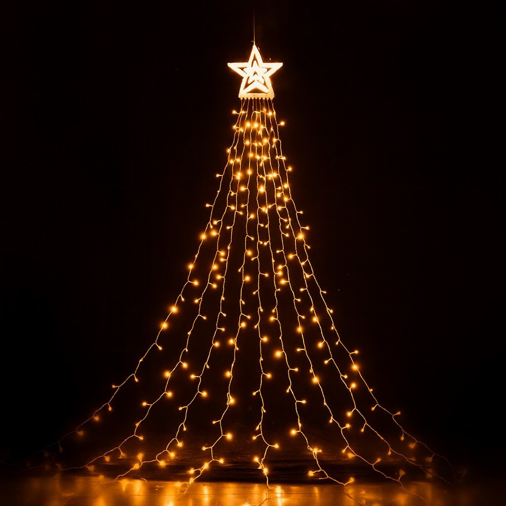 LED Csillagos karácsonyi fényfüzér, 6 m hossz, 300 LED, IP44, 8 világítási mód, meleg fehér fény