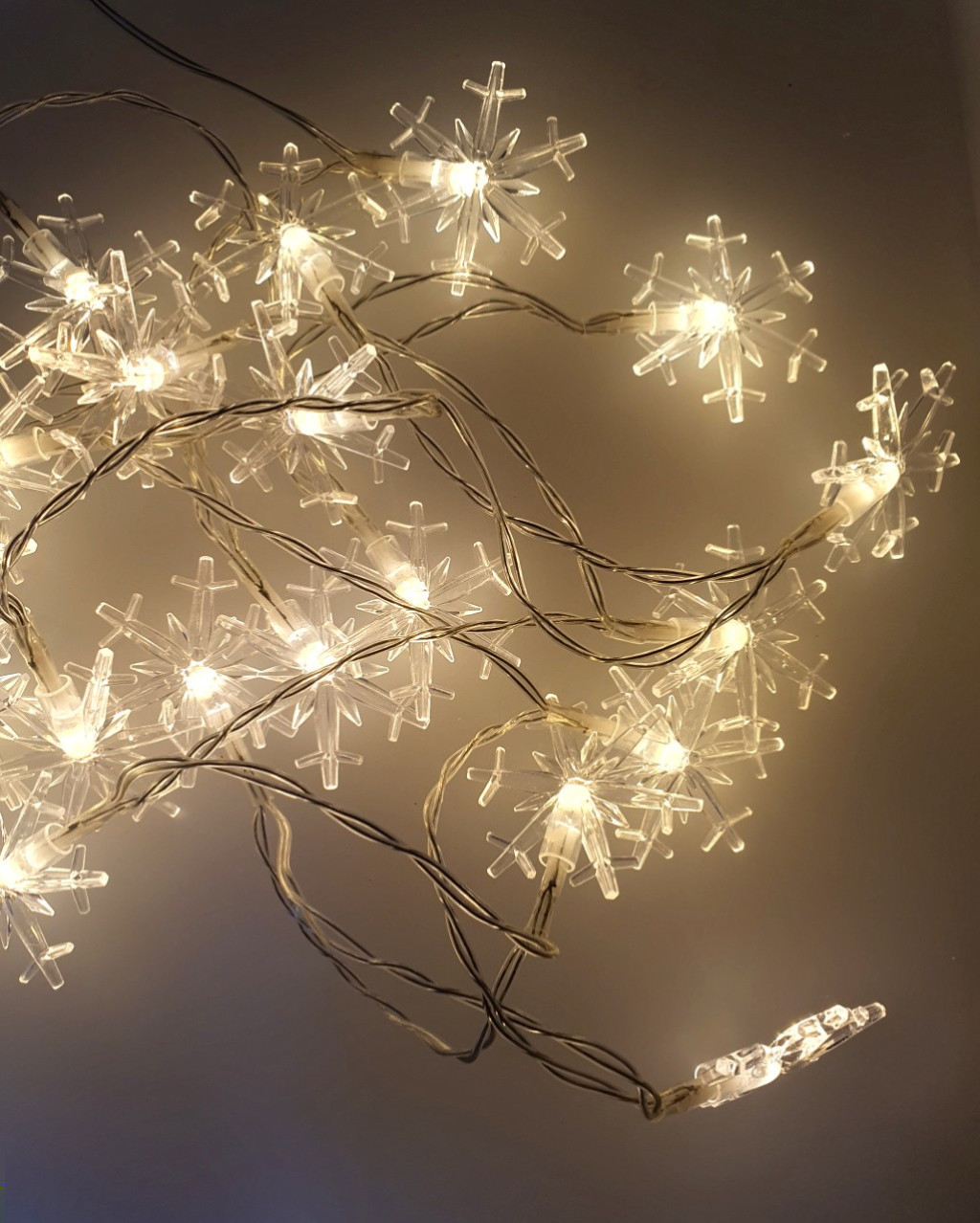 Hópelyhes LED Fénygirland, 20 LED, Meleg Fehér, Elemes, 2,2 m