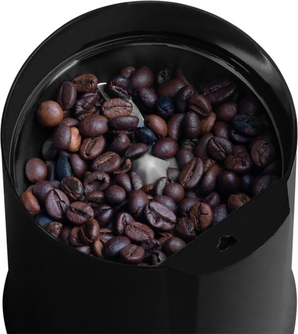 Ez a kompakt elektromos kávédaráló gyors és egyenletes orlést biztosít otthoni használatra. A rozsdamentes acél aprítókés akár 50 g szemes kávét 15 másodperc alatt ledarál, így mindig friss, aromás kávé készítheto.