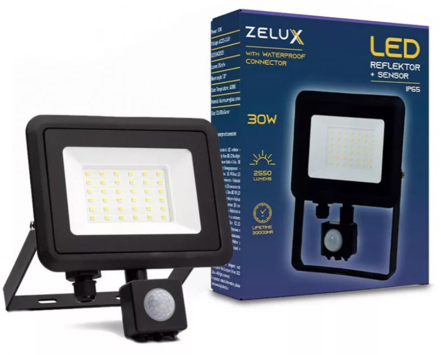 A Zelux 30W mozgásérzékelős LED reflektor a nagyobb teljesítményű kültéri világítás modern megoldása, amely megbízhatóan működik minden időjárási körülmény között.